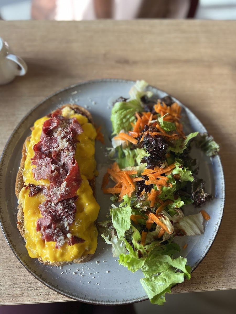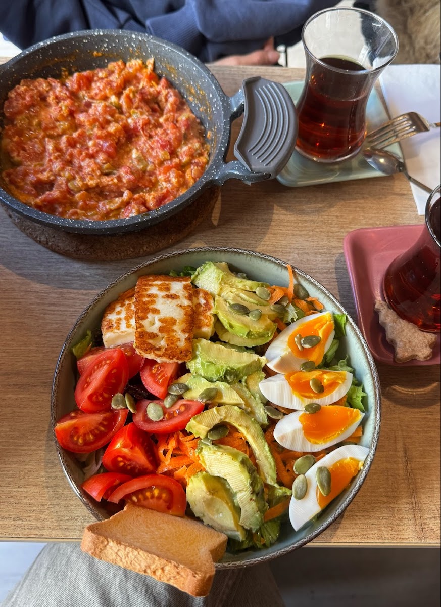 The menu focuses on fresh, well-balanced breakfast options that don’t try too hard, yet still feel thoughtfully prepared. One of the most talked-about plates is the Avocado Breakfast Plate, which arrives colorful, light, and satisfying without being overwhelming. It’s the kind of dish that works just as well for a late breakfast as it does for a casual brunch. Alongside it, the Akdeniz Tost stands out with its warm, comforting flavors, offering a Mediterranean-style twist that feels familiar but never boring.